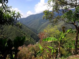 Le matin, après un passage à l’école de Chucura, nous poursuivons notre descente des Yungas, laissant les paysages Andins derrière nous. La végétation est maintenant de type subtropical.
