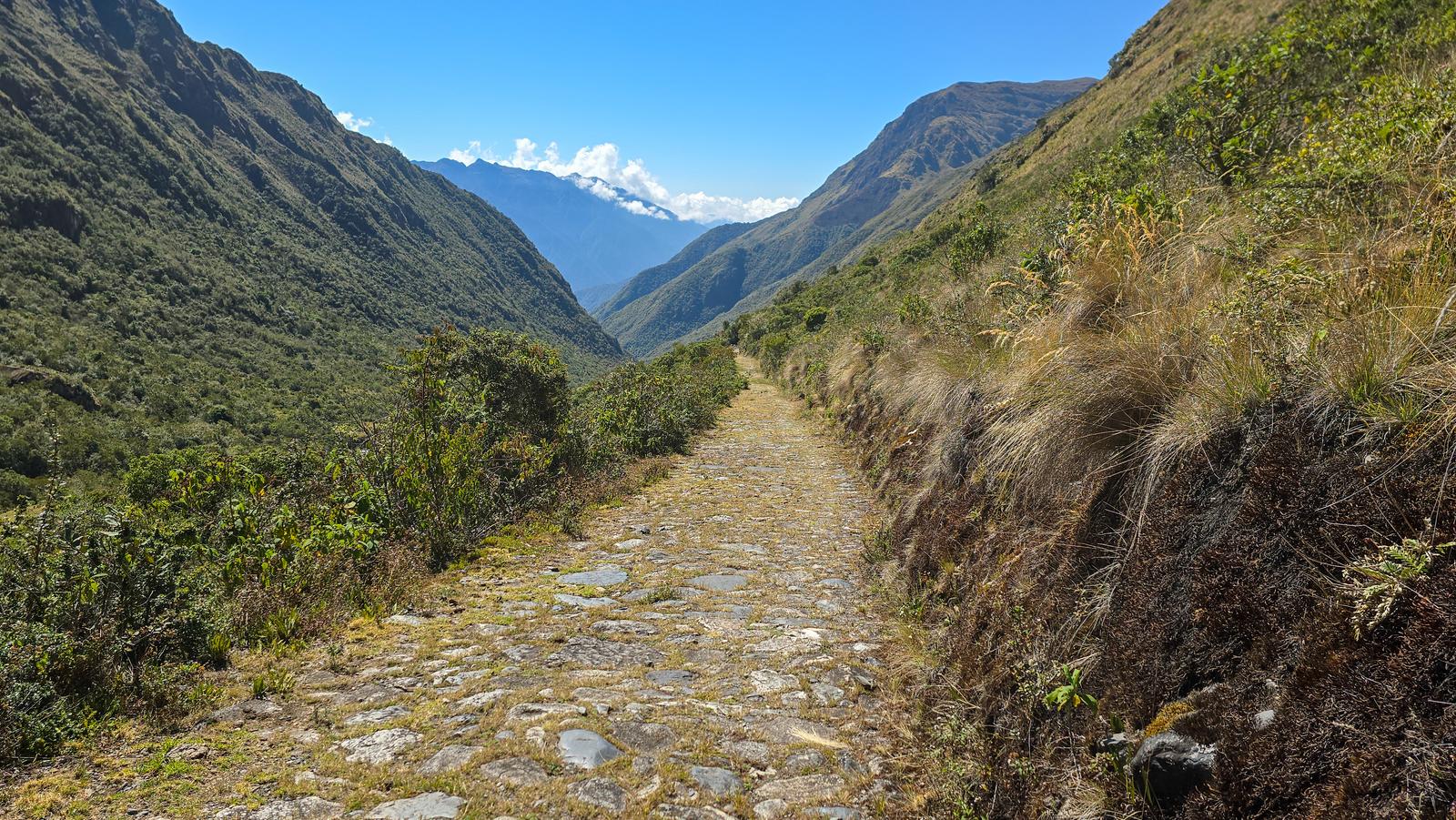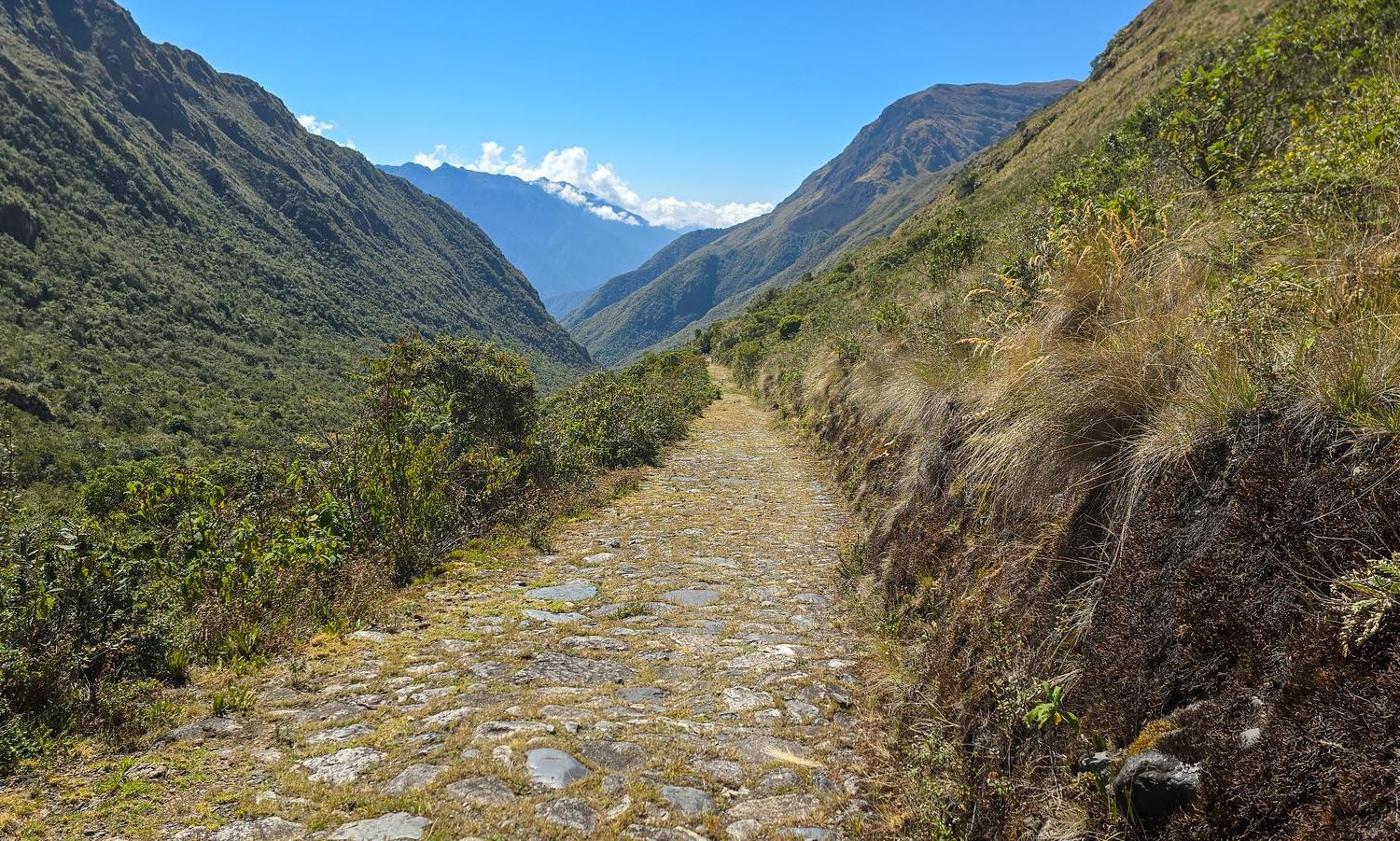 Après 3h, nous rejoignons le village de Samaña Pampa et le trek du Choro, tout en sillonnant les pavés Incas et traversant quelques cours d’eau.